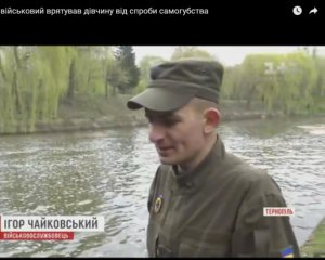 "Реакція військового була миттєвою. Парубок на бігу зняв із себе куртку та хутко спустився до річки крутим схилом. На це у нього пішло менше хвилини. Дівчина після падіння спливла за півдесятка метрів від мосту. Він кинувся у воду за нею. Коли незнайомка після штучного дихання отямилася, рятівник відвів її до медиків та поліцейських. Дівчина зізналася, що причиною стрибка стали негаразди в родині та сварка з хлопцем", - йдеться в сюжеті.
