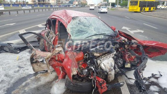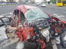 На столичному просп. Перемоги сталася жахлива ДТП. Таксі врізалося в опору шляхопроводу.