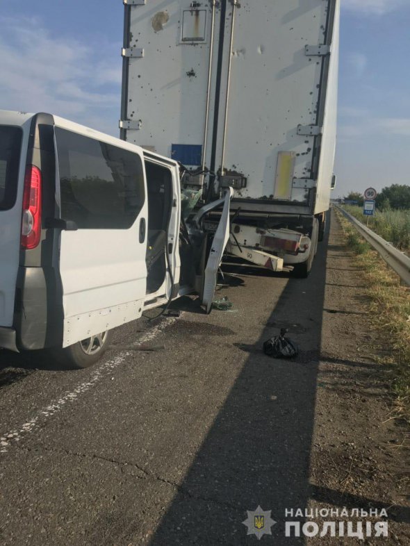 25 червня близько сьомої ранку на 350-му км автошляху Київ-Одеса водій мікроавтобуса Nissan зіткнувся з вантажівкою Volvo, що рухалася попереду.