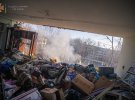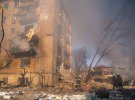 Ракету російських загарбників збили вранці 18 березня. Її залишки влучили у житловий будинок Подільського району. Спалахнула пожежа. За попередньою інформацією, врятували 12 осіб, евакуювали 98 людей.