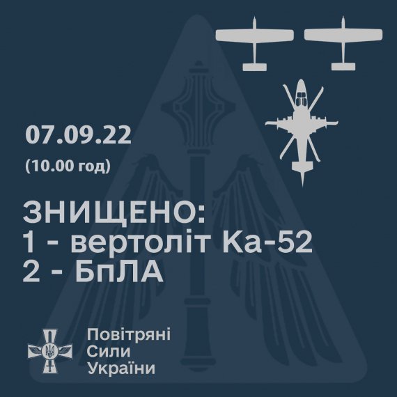 3 вересня Повітряні сили ЗСУ вчергове "приземлили" техніку росіян. Близько 10:30 на Донеччині збили вертоліт і безпілотник.
