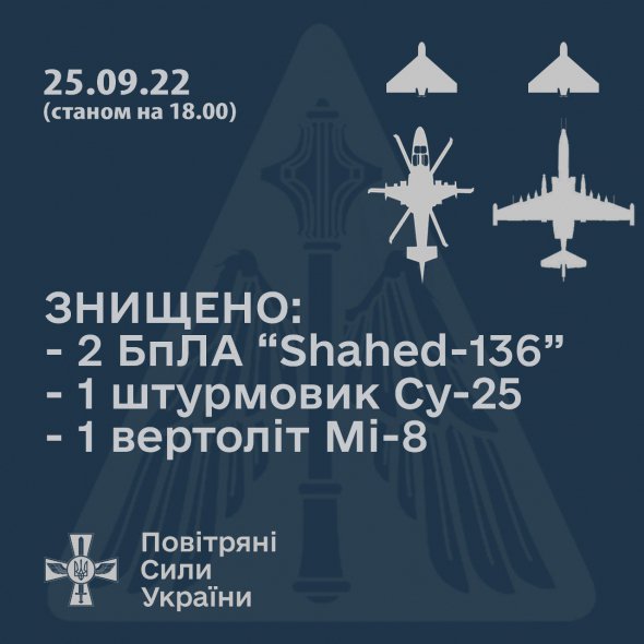 У неділю, 25 вересня, близько 17.00 години підрозділами зенітної ракетної Одеської бригади повітряного командування "Південь" збито ворожий штурмовик Су-25, який атакував наші війська на Херсонщині.