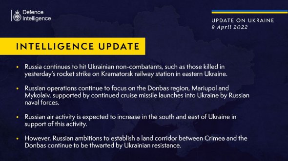 "Очікується посилення російської повітряної активності на півдні та сході України. Окупанти прагнуть відкрити сухопутний коридор між Кримом та Донбасом. Але ціль регулярно зривається активним українським опором", - йдеться у повідомленні.