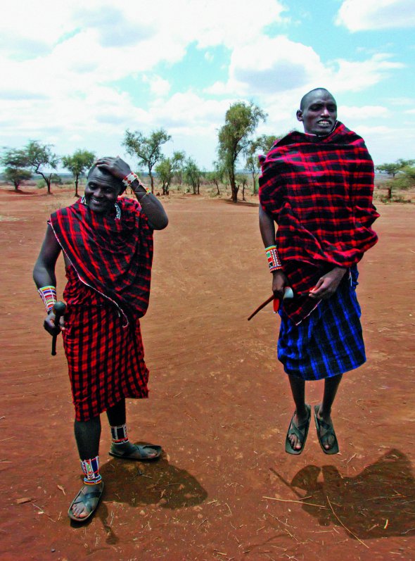 Після вечірнього сафарі нас кличуть на посиденьки до багаття. У лодж-готелі неподалік національного заповідника Амбоселі, де ми зупинилися на нічліг, масаї з навколишніх сіл влаштовують шоу. Під гортанні пронизливі звуки кожен по черзі виходить у центр кола, показуючи свої силу та спритність. Першим хлопцем на селі це плем'я вважає того, хто може зі списом вполювати лева і стрибає найвище.