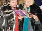 У джинсах від Chanel прийшла колишня гімнастка Катерина Серебрянська. Каже, мала багато справ, тому не встигла заїхати додому й одягнути сукню. Її чекали в супроводі соліста гурту "Танок на майдані Конго" Олега Михайлюти.