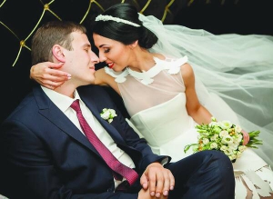 — Святкували в тому ж ресторані, де мали перше побачення, — каже наречена. — Сукню мені чотири місяці шив грузинський дизайнер. Люблю бути оригінальною, відрізнятися від усіх. Тому замовила плаття, яке придумала сама. На примірки їздила до Києва. Після весілля ми сваритися перестали. Раніше, коли жили разом, часто конфліктували. Я страшна акуратистка. Люблю, щоб усе було на своїх місцях, а Сергій не такий охайний. Після весілля на це закриваю очі.