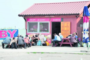 За 200 м від пункту українці вздовж дороги продають горілку, пиво і сигарети. За 10 злотих, це 25 грн, віддають полякам пляшку спиртного. По 6 злотих, 15 грн, — пачку цигарок. За 4 злотих, 10 грн, — продають 1 л пива "Сармат". З однією пачки курива мають 2,5 грн зиску. На пляшці горілки заробляють 3-4 грн.