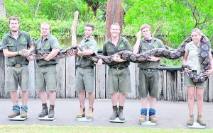 Працівники австралійського парку рептилій знайшли спосіб, як зважити 6,4-метрового пітона на кличку Атомна Бетті. Дівчина і п'ятеро хлопців взяли змію на руки і стали на ваги. Після експерименту відняли свою вагу від отриманого результату.