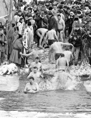 10 тис. киян на Водохреще, 19 січня, прийшли на пляж столичного Гідропарку купатися і набрати свяченої води.