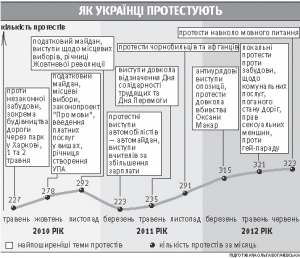У червні кількість протестів в Україні встановила трирічний рекорд, стверджують у Центрі дослідження суспільства. Ця неурядова організація відстежує громадські виступи з 2009-го.