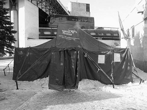 Активісти громадянського руху "Спільна справа" 6 лютого сфотографували пункти обігріву Міністерства надзвичайних ситуацій у Дніпропетровську. Там були розвішані прапори Партії регіонів. Такі ж стяги були в еменесівських пунктах у Кривому Розі, Донецьку, Джанкої.