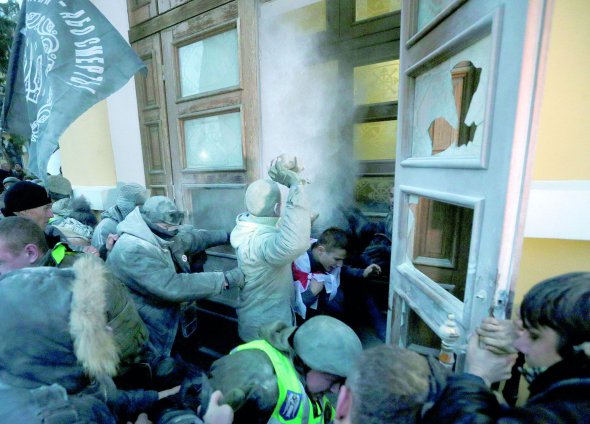 — Те, що сьогодні відбулося, було класичною провокацією. Це гра Порошенка — щоб усе це зобразити, як протест двох-трьох тисяч маргіналів, які лише те й роблять, що ламають двері та вікна, — говорить Саакашвілі. Напередодні написав листа президентові. — Я йому сказав: "Ви мене звинуватили неправильно. Ви не можете не знати, що це образа — називати мене російським агентом". Мені сказали, що за кілька днів президент готовий зустрітися. Але я відповів: "Ні, так не піде. Я не та людина, яка через задні двері кудись заходитиме".