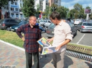"У мене вже є, – відказує 60-річний Ігор Стоянович на пропозицію придбати подарунок. - У серванті стоїть. Він хороша людина, я за нього голосував. А Ви насмішками порушуєте Конституцію і я міг би записати на диктофон і заявити на вас. Але мушу поспішати додому. В мене собака голодний".
