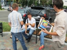 Згодом підходить Олександр Брижан, протягує в руці 4 купюри по одній гривні. Кажу, що йому як першому клієнтові віддам портрет розміром А3 безкоштовно, якщо скаже, з якого року Віктор Янукович на посту президента.