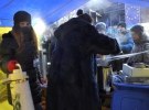 "Сьогоднішня ніч найхолодніша - було до -5градусів. Але пройшла спокійно. Хоча приходять багато п'яних і неадекватних людей, намагаються щось пояснювати, починають битися біля штабу. Ми спокійно і мирно всі питання вирішуємо, не піддаємося на провокації. Наш штаб зроблений із кількох наметів, які пережили ще Помаранчеву революцію. Уночі тут лишається до 50 осіб. Люди приносять теплі ковдри, лижні костюми, шуби, тому ми не мерзнемо. У нас всередині строгі правила - не пускаємо сторонніх людей, у кожного є бейдж і відповідальність за певну ділянку. На ніч усіх неповнолітніх відправляємо додому. У нас заборонені спиртні напої, колючо-ріжучі предмети, піротехніка", - каже охоронець штабу Роман.