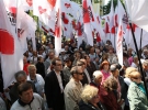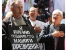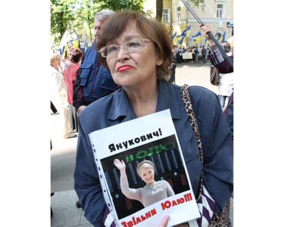 Поки суд приймав рішення, біля будівлі мітингували прихильники засудженої Юлії Тимошенко з плакатами "Янукович -бес Украины", "Янукович, звыльни Юлю", та "Я - небезпечний опозиціонер". При цьому мітингувальники частково були одягнені в тюремну форму.