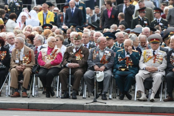 Хрещатиком пройшла військова техніка часів війни. Військовослужбовці, одягнені у форму часів Великої Вітчизняної війни, несли військові штандарти 1-го, 2-го, 3-го, 4-го Українських фронтів і "Українського партизанського фронту", а також 60 бойових прапорів об'єднань і військових частин.