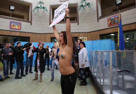 Чотири дівчини, роздягнувшись до пояса, вигукували гасло: "Досить ґвалтувати країну!".