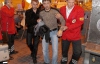 Водночас, над входом до ЦУМу стоять 5 учасниць руку Femen. Дівчата тримають плакат: "Ю і Я - одна х**я", а також транспоранти англійською та російською мовами: "Ввімкни розум" та зі значком "Play".