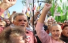 Перед співробітниками правоохоронних органів стоять прихильники Юлії Тимошенко з транспорантами "Юлі — Волю!".