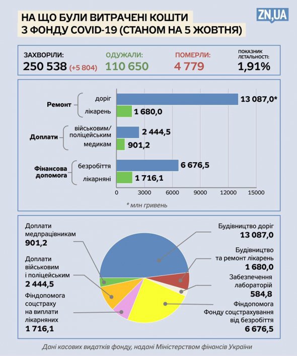 Для прикладу, на ремонт лікарень витрачено 1 млд 680 млн, тим часом як на відновлення доріг з того таки "коронавірусного" фонду витратили понад 13 млрд, повідомляє ZN.UA