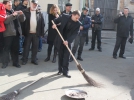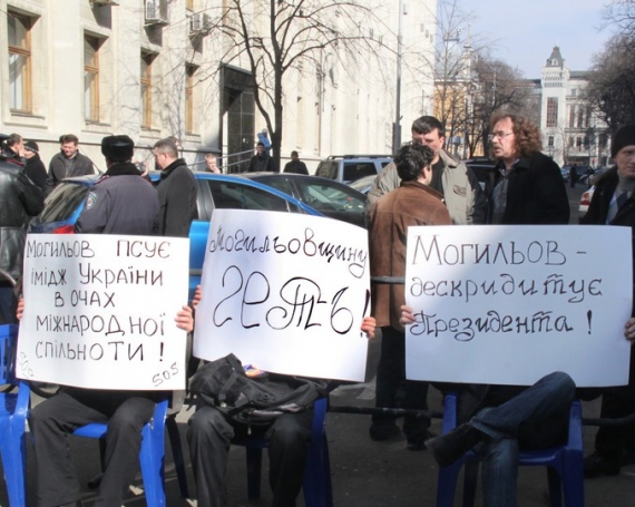 Водночас, активісти тримали плакати: "Могильовщину геть!", "Могильов псує імідж України в очах міжнародної спільноти", "Могильов дискредитує президента!".