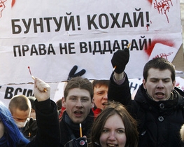 Вони також скандують: "Виходь, бунтуй, Україну рятуй", "Знання - не товар. Універ - не базар!", "Табачника на нари - тоді підем на пари!".