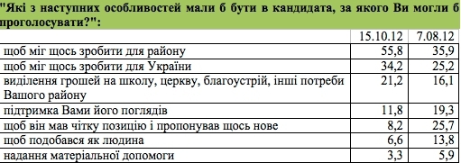 Цікаво, що з ходом виборчої кампанії певною мірою помінялися пріоритети виборців - важливішими стали конкретні можливості щось зробити, менш важливими - загальна позиція, погляди, а також загальна симпатія: