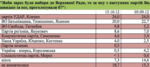 Згадана двійка (Парцхаладзе - Ар'єв) дійсно йшла попереду, досягнувши максимальної підтримки у 15 - 17 відсотків на кінець літа, а далі ріст їхнього рейтингу зупинився. Але всередині вересня відбулись дві ключові події: