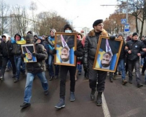 На чолі колони учасники пронесли перевернуті портрети президента Віктора Януковича , глави МВС Віталія Захарченка, секретаря РНБО Андрія Клюєва та міністра освіти і науки Дмитра Табачника.