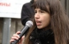Мітингарі тримають у руках фотографії побитої вчора вночі журналістки Тетяни Чорновол та скандують: "Геть кривавого міністра!" та "Захарченка - геть!".