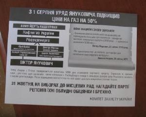 У результаті обшуку співробітники міліції знайшли в приміщенні офісу листівки, спрямовані проти проекту Податкового кодексу, а також проти підвищення з 1 серпня цін на газ.