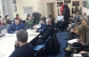 Наразі в КМДА - близько 10 людей. Присутні дивляться на екрані новини та інтерв'ю політиків.