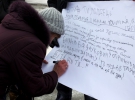 "Під час акції перехожі мали можливість написати свої побажання Президенту на ватманах. Хтось з учасників написав "Та щоб ти здох!", працівники СБУ побачили в цьому побажанні посягання на честь та гідність гаранта і дали розпорядження міліції ідентифікувати всіх учасників акції. Як доказ вони надали працівникам міліції фотографії, які завантажили з соціальної мережі Вконтакте", - пояснюють у прес-службі організації.