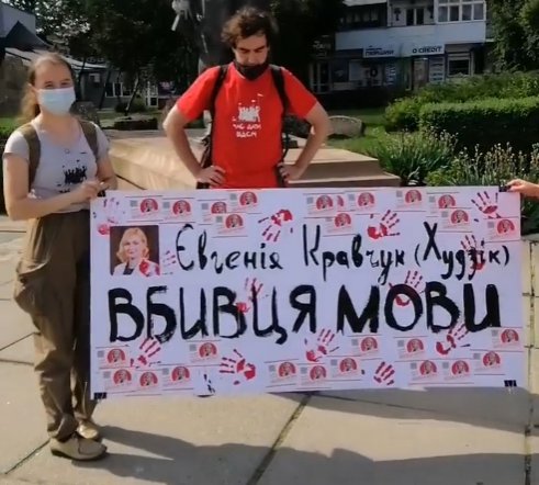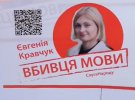 Молодь намалювала плакат "Євгенія Кравчук - вбивця мови". На листівках надрукували: "Євгенія Кравчук нищить українську мову та підіграє інтересам Росії", згадується законопроєкт.