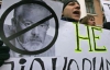 Близько 20 студентів тримають державний прапор та написані від руки транспоранти: "Геть українофоба Табачника" та "Я тебе породив — я тебе і вб'ю!!! - підпис: український народ".