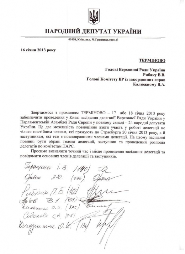Текст відповідного звернення делегати направили голові ВР Володимиру Рибаку.