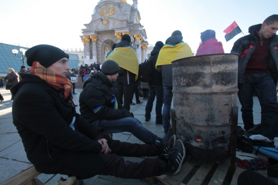 Водночас на Майдані незалежності починався ранок сьомого дня Євромайдану. Мітингувальники грілися біля бочок, де палили дрова.