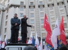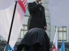 Перед цим вони видерлися на дах автівкі і виступили перед учасниками мітингу біля Кабміну, заявив, що зроблять все, щоб потрапити на засідання уряду і вимагати відставки кабінету міністрів Миколи Азарова, а також висловити вимогу про євроінтеграцію.