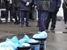 - Ми принесли смітники з "мусором". Цим ми показуємо символ сучасної української міліції. На жаль, смітники з "мусором" символізують ставлення людей до правоохоронців. Бо до міліції, на жаль, позитивного ставлення немає. Від міліції ніхто не чекає захисту. По суті зараз вона перетворилася на воєнізоване угруповання Партії регіонів, - каже представник "Чорного Комітету" Борис Тицький, показуючи на 7 відер зі сміттям перед собою. На кожному з них - наліпка із символами різних структур правоохоронних органів: "Беркут", "Барс", МВС, СБУ, ДАІ, "Грифон".