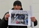 Активісти тримають фотографії з зображенням сутички з "беркутівцями" під Гостиним двором і написом "Кияни все бачать - кияни не пробачать", фотографіями співробітників міліції, які були причетні до сутички і написом "Їх розшукують кияни". Дівчина у футболці із зображенням "Януковича із простреленої головою" тримає намальований від руки плакат: "Навіть собака - друг людини". Поряд ще один: "Кожному Захарченку по Запорожцю".