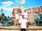 На одній зі світлин чиновник, ймовірно, з родиною знаходиться на центральній площі в Ніцці.