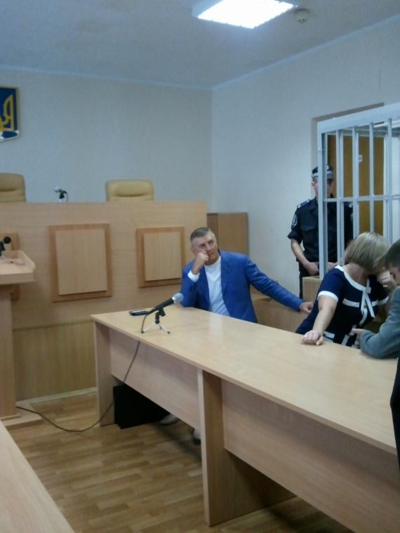 Луценко через грати тихо перемовляється з дружиною Іриною та іншими підсудними Володимиром Тарасенком і Олегом Павленовим. Адвокати Олексій Баганець та Ігор Фомін слухають Медушевську.
