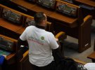 Народні депутати з фракції "Слуга народу" перед виступом президента Володимира Зеленського прийшли у Верховну Раду в білих футболках.