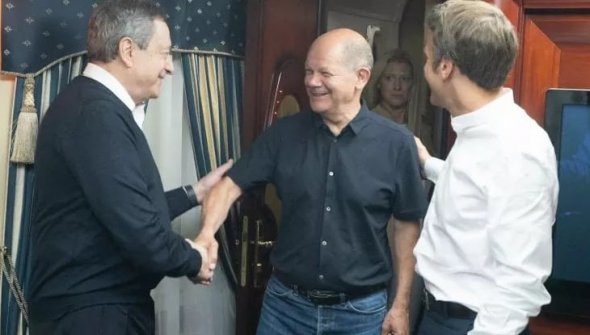 Президент Франції Еммануель Макрон, канцлер Німеччини Олаф Шольц і прем'єр-міністр Італії Маріо Драґі приїхали в Україну 16 червня.