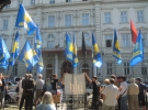 Сорок "свободівців" із прапорами сьогодні півгодини пікетували Львівську обласну адміністрацію і вимагали зупинити свавілля правоохоронних органів.
