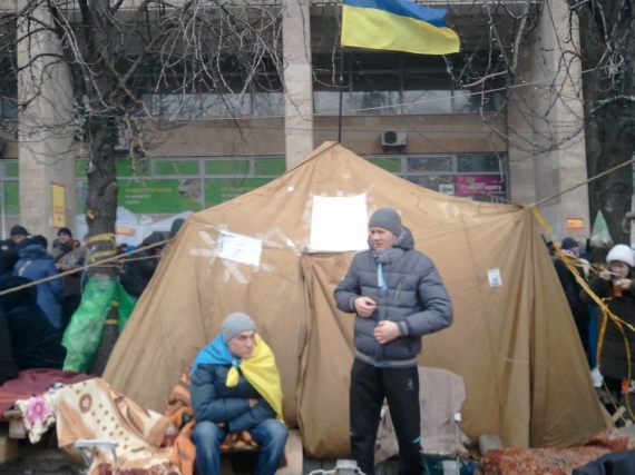 До наметового містечка в основному пропускають журналістів пропускають за посвідчення так само як і до будинку профсоюзів, де знаходиться прес-центр.
