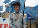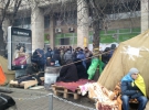 Більшість мітингувальників з символікою та прапорами Євросоюзу. Дехто гріється біля діжок. Волонтери розносять людям чай та каву, бутерброди з сиром, ковбасою, нарізані яблука, а також борщ у пластикових стаканах.