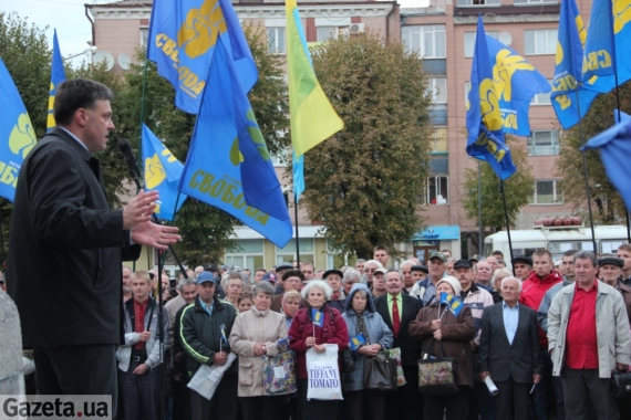 Під час виступу Олега Тягнибока на мітингу в Черкасах ледь не сталася бійка. На Театральну площу місцева влада пригнала автобус із гучномовцем, аби перебити виступ представника "Свободи".