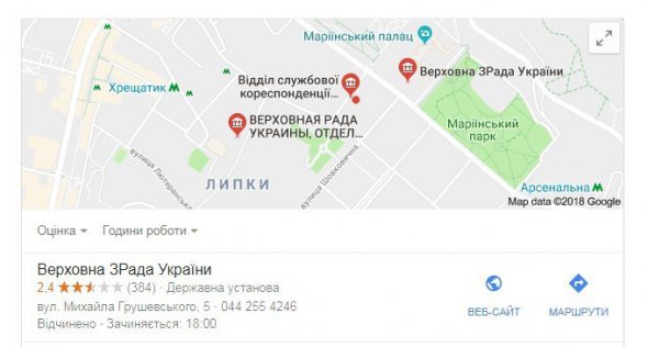 Користувачі Google Maps перейменували Верховну Раду України на "Верховну Зраду".